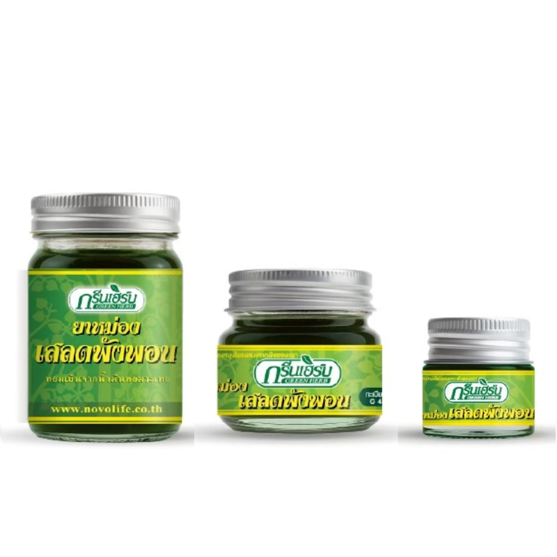 ยาหม่องสมุนไพรกรีนเฮิร์บ ลดผดผื่นคัน อาการอักเสบ แมลง สัตว์กัดต่อย กลิ่นหอมเย็นจากน้ำมันหอมระเหย สดชื่น บรรเทาอาการวิงเวียนศรีษะ
