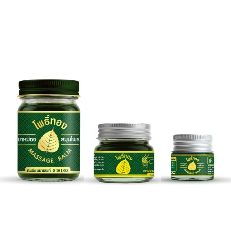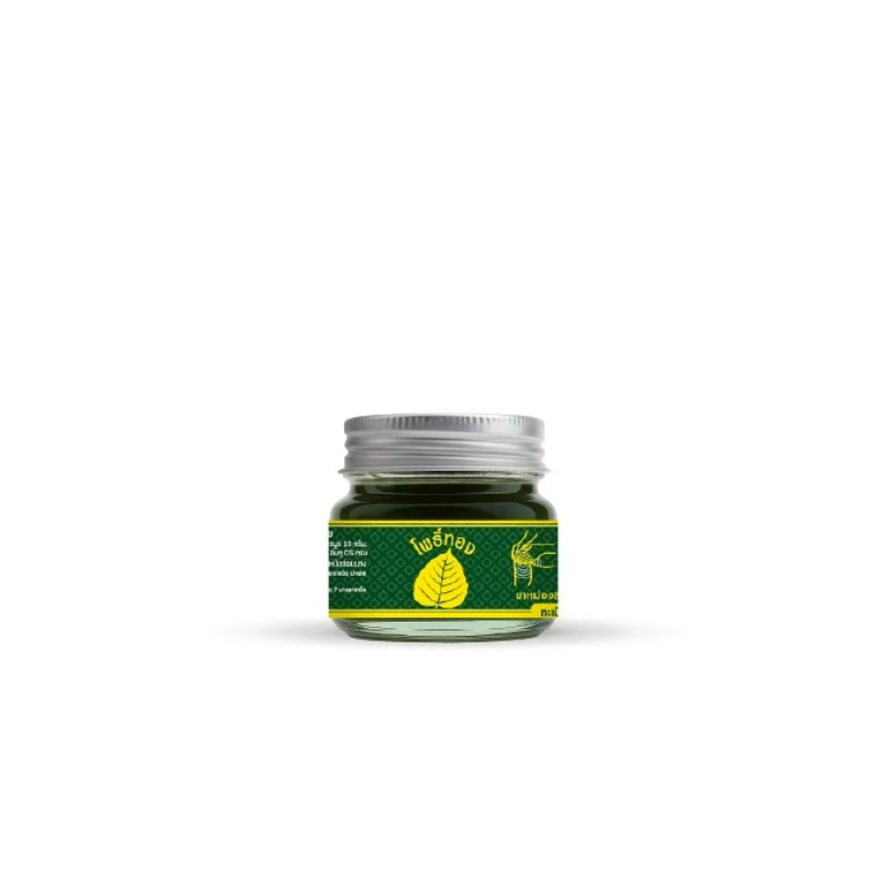 ยาหม่องสมุนไพรโพธิ์ทอง ลดผดผื่นคัน บรรเทาอาการจากแมลงกัดต่อย ใช้ทา นวด บรรเทาอาการปวดเมื่อยตามร่างกาย สร้างความผ่อนคลาย ด้วยกลิ่นสูตรเฉพาะจากสมุนไพร